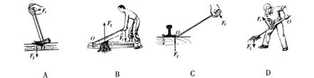 (2)在图2中,用一杠杆撬一块石头,杠杆上的A点是动力的作用点,动力可以向上,也可以向下,还可以朝其它方向。(a)当动力方向向下时,在图上标出杠杆的支点o;(b)在杠杆上画出撬动石块的最小动力F。