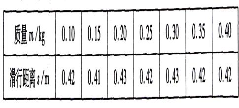 (1)从上述数据分析,可以得到的结论是:在初速度和接触面粗糙程度相同的条件下,物体在水平面上滑行的距离与物体的质量大小 ;