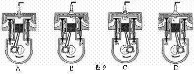 17、汽油机是由四个冲程不断循环而工作的,图9中表示内能转化为机械能的冲程是