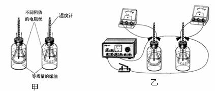 为了验证自己的猜想,他选择了如图15甲所示的装置(除电阻丝阻值不同外,其余条件均相同)及电源.开关.电压表.导线若干。他将两电阻丝串联后接入电路,如图15乙所示。