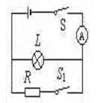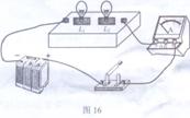 (09广州)20.图16中两灯泡L1、L2在盒内的连接方式未知,电源电压为6V。开关闭合后两灯均发光,电流表读数为0.9A;若把L1取下,L2仍发光,电流表读数变为0.3A