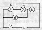 (09烟台)18.如图11所示的电路中,L1和L2是两只标有“6V3W”字样的小灯泡,电源电压6V.闭合开关两灯正常工作.则a是________表,b ________表,a表的示数是________.