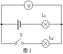 12、如图2所示,已知电源电压为6V,且保持不变,当开关S闭合后,发现只有一只灯发光,电压表的示数为6V,存在这一现象的原因可能是( )