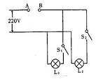 3.如图12是刚安装的家庭电路的电路图,电工师傅为了检验电路是否出现短路,在准备接入保险丝的A.B两点间先接入一盏“PZ200-15”的检验灯 (1)断开开关S1,闭合开关S2,检验灯正常发光: (2)断开开关S2,闭合开关S1,发现检验灯发光较暗, 根据以上现象,你可以判断出 (选填“L1”或“L2”或“没有”)发生短路。 |