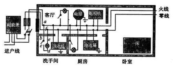 ⑹小宇想在卧室安装一个照明电灯和一个红色电源指示灯。要求:只要有电,红色电源指示灯就一直亮着;照明电灯则由开关控制。请你在图16中卧室的位置帮他画好电路图。