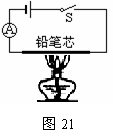 由于同学粗心,漏掉了其中一个数据,请你按(图22)电流表示数补上: A,分析表中数据可以初步得出:铅笔芯的电阻随温度的升高而___ 。