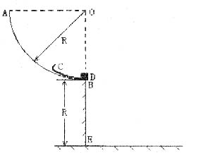 (2)若小物块滑离CD厉沿AB轨道下滑又从B端滑出,并做平抛运动,而后落到离E点水平距离也为R的水平地面上,则AB弧对小物块的滑动摩擦力对其所做的功为多少?