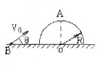 面的顶部A点,求初速度v0及抛射角θ的大小。(设质点落