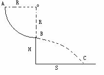 33、(9分)如图所示:一滑雪运动从A点从静止沿四分之一的圆轨道自由滑下,滑到B后水平飞出到C点落地,已知轨道的半径为R,B点离地面的高度为H则(1)运动员到达B点的速度为多少? (2)在B点轨道对运动员的支持力为多少?(3)运动员可滑行的水平距离S为多少?(不计摩擦力和空气阻力)