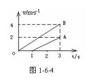 8.A、B两质点的v-t图像如图1-6-4所示,设它们在同一条直线上运动,在t=3s时它们在中途相遇,由图可知( )