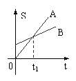 12. 右图所示为A和B两质点的位移-时间图象,以下说法中正确的是:
