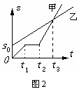 7.图2是甲、乙两物体在同一直线上运动的s-t图象,以甲的出发点为原点,出发时间为