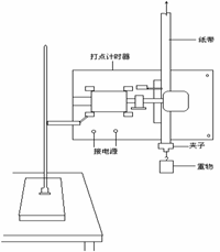 11.(4分) 下图是运用自由落体规律测定重力加速度的装置,打点计时器所用电源的频率为50Hz。
