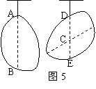 11、薄板的重心位置可以用悬挂法求出。图5所示,先在A点把物体悬挂起来,作出直线AB,然后在D点把物体悬挂起来,作出直线DE,即可知重心在两直线AB、DE交点C处,其实验原理是 。