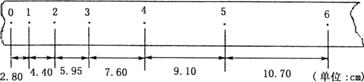 16.在做“测定匀变速直线运动的加速度”的实验中,所用打点计时器的打点频率是50Hz,在打出的纸带上每5个点选一个计数点,分别标为0、l、2、3、……测得各点间距如下图所示。则小车的加速α=________m/s2。(结果保留两位有效数字)