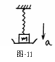 25.(10分)如图-11所示,在劲度系数为k的弹簧下端挂一质量为m的物体,物体下有一托盘,用托盘托着物体使弹簧恰好处于原长。然后使托盘以加速度a竖直向下做匀加速直线运动(a<g),试求托盘向下运动多长时间能与物体脱离?