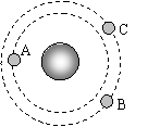 三颗人造地球卫星A、B、C绕地球作匀速圆周运动,如图(5)所示,已知MA=MB<MC,则对于三个卫星,正确的是( )