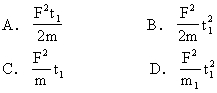 13.一质量为m的木块静止在光滑的水平面上,从t=0开始,将一个大小为F的水平恒力作用在该木块上,在t=t1时刻F的功率是[ ]