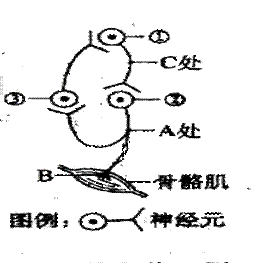 26. (宁夏)(8分)右图是神经元网络结构示意简图,图中神经元①、②、③都是兴奋性神经元,且这些神经元兴奋时都可以引起下一级神经元或肌细胞的兴奋。和神经细胞一样,肌肉细胞在受到适宜的刺激后,也能引起细胞膜电位的变化。图中B处表示神经肌肉接头,其结构和功能与突触类似。请回答: