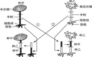 27.科学家用两种伞藻做了如右图所示的嫁接实验,该实验说明