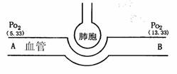 34. 右图表示肺换气,P02代表O2的分压,分压越大分子浓度越大,后面括号中的数值单位是千帕(kPa),依图中数据判断肺泡中的氧分压值:
