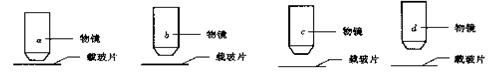 用显微镜的一个目镜分别与4个不同倍数的物镜组合来观察血细胞涂片。当成像清晰时,每一物镜与载玻片的距离如图所示。如果载玻片位置不变,用哪一物镜在一个视野中看到的细胞数目最多