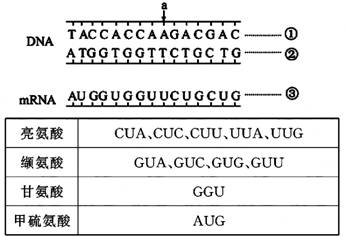 21.(16分)如图表示某DNA的片段及其转录出的信使RNA,请据图回答问题(几种相关氨基酸的密码子见下表):