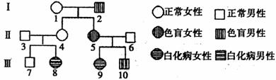 (3)调查中发现一男生患有色盲,其同胞姐姐患有白化病,经调查其家族系谱图如下: