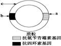 4.(2009浙江浦江二模)人们常选用的细菌质粒分子往往带有一个抗菌素抗性基因,该抗性基因的主要作用是质粒是基因工程中最常用的载体,某质粒上所有标记基因如下图所示。外源基因插入的位置不同,细菌在培养基上的生长情况也将不同,通过标记基因表达情况可以推知外源基因(目的基因)是否转移成功。下表表示当外源基因插入a、b、c不同点时细菌的生长情况,据表推测①②③三种重组后的细菌,其外源基因插入点正确的一组是