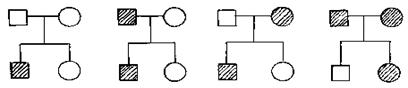 8.下图4个家系,阴影为遗传病患者,白色表现正常,下列叙述不正确的是
