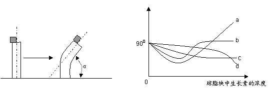 10.某研究小组探究避光条件下生长素浓度对燕麦胚芽鞘生长的影响。若干胚芽鞘去顶静置一段时间后,将含有不同浓度生长素的琼脂块分别放置在不同的去顶胚芽鞘一侧(如左下图),一段时间后测量并记录弯曲度(α)。右下图曲线中能正确表示其实验结果的是