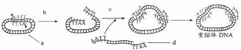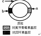 质粒是基因工程中最常用的运载体,它存在于许多细菌体内。质粒上有标记基因如图所示,通过标记基因可以推知外源基因(目的基因)是否转移成功。外源基因插入的位置不同,细菌在培养基上的生长情况也不同,下表是外源基因插入位置(插入点有a、b、c),请根据表中提供细菌的生长情况,推测①②③三种重组后细菌的外源基因插入点,正确的一组是 (