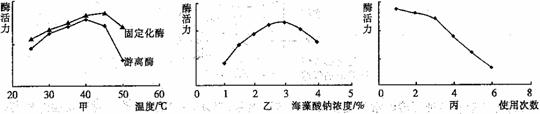 (2)乙图曲线表明浓度为________的海藻酸钠包埋效果最好,当海藻酸钠浓度较低时,酶活力较低原因是___________。