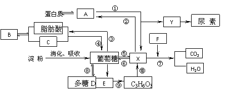 (5)②过程主要发生在肝脏。化验肝炎病人的血液,会发现__________的含量偏高,这是因为肝炎病人肝细胞膜的通透性变________。Y是对人体有害的物质,它转变成尿素的过程在_____进行。