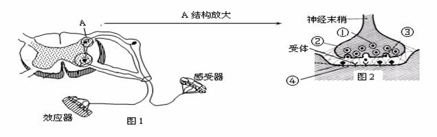 (1)图1中的感受器接受刺激产生神经冲动时,膜内电位变化是_