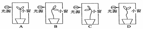 23.在正方形暗箱内放一盆幼苗,暗箱一侧开一个小窗,固定光源的光可从窗口射入。把暗箱放在旋转器上水平旋转,保持每15分钟匀速转一周。一星期后幼苗的生长状况为