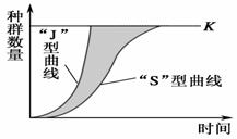 30.如下图所示为在理想状态下和自然环境中某生物的种群数量变化曲线。下列对阴影部分的解释正确的是 ( )