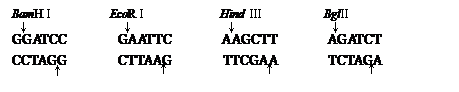 4. 下图为四种限制酶BamHⅠ、EcoRⅠ、Hind Ⅲ和BglⅡ的识别序列和切割位点: