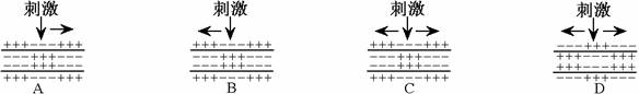 7.在一条离体神经纤维的中段施加电刺激,使其兴奋。下列各图表示刺激时的膜内外电位变化和所产生神经冲动传导方向(横向箭头表示传导方向)。其中正确的是