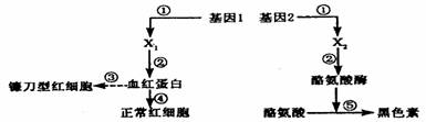 12. 下图为人体内基因对性状的控制过程,下列叙述不正确的是( )