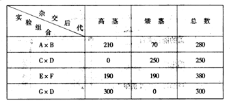 64. 豌豆的高茎〈D〉对矮茎(d)为显性,将A、B、C、D、E、F、G7种豌豆进行杂交,实验结果如下表。