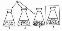 ①1、2、3号锥形瓶相比较,相同的非生物因素有 ,3、4号锥 形瓶相比较,生态系统的成分中不同的是 。