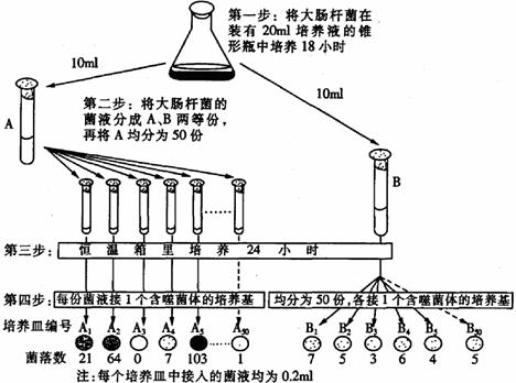 (3)1943年,曾获诺贝尔生理及医学奖的美国科学家鲁里亚和德尔布吕克设计实验,研究大肠杆菌的抗噬菌体突变是发生在接触噬菌体之前还是之后。实验过程如下图。