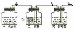 (3)关紧C打开A,撒去乙的光照,则甲中乳酸的量在短时间内将 ,原因是 (2分),此过程中乳酸菌的种内斗争越来越 。