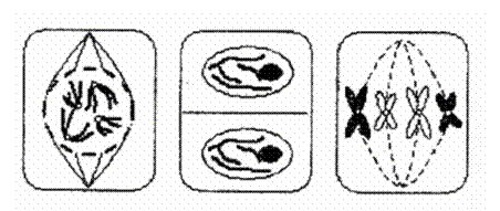 (3)某同学做“观察植物细胞的有丝分裂”实验时,绘制了细胞分裂期的三个时期模式图,请你在答题卡绘图区画出细胞分裂期中所缺时期的模式图。