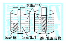 4、下图实验装置用于研究温度对凝乳酶催化乳汁凝固的影响。先将酶和乳汁分别放入2个试管,然后将2试管放入同一水浴(温度用T℃表示)中持续15min,再将酶和乳汁倒入同一试管中混合,保温并记录凝乳所需要的时间。通过多次实验,并记录在不同温度下凝乳所需要的时间,结果如下表: