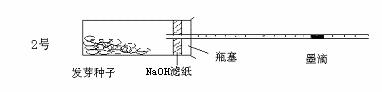42、(6分)用于生物呼吸作用有机物的差异会导致呼吸作用释放的CO2与吸收的O2比发生差异,这可用呼吸商表示: 为了测定种子萌发时的呼吸商,现准备了3只玻璃瓶,瓶塞,带刻度的玻璃管,发芽的蚕豆种子,滤纸,10%的KOH溶液,清水等.1号玻璃瓶的实验装置如图所示.