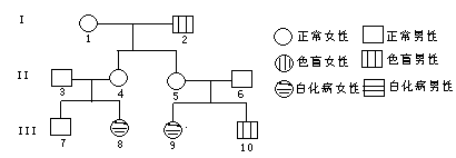 (3)调查中发现一男生患有色盲,其同胞姐姐患有白化病,经调查其家族系谱图如下: