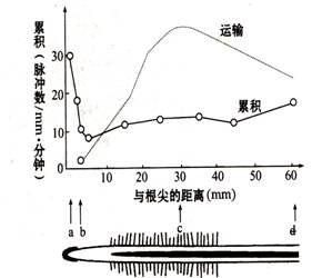 (2)在与a、b、c、d四点相对应的细胞中:积累量最高的是______点处的细胞,这是因为根尖该部位没有_________________结构。