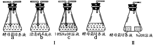 (1)甲兴趣小组想探究的具体问题是:酵母菌是否在有氧、无氧条件下均能产生CO2。现提供若干套(每套均有数个)实验装置如图Ⅰ(a-d)所示:
